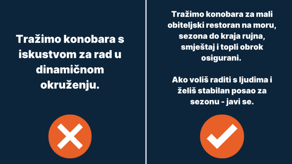 Većina oglasa na koje nailazimo zvuči apstraktno. “Dinamično radno okruženje”, “mlad i ambiciozan tim”, “poticajna primanja” – termini koji ne znače ništa potencijalnim kandidatima.